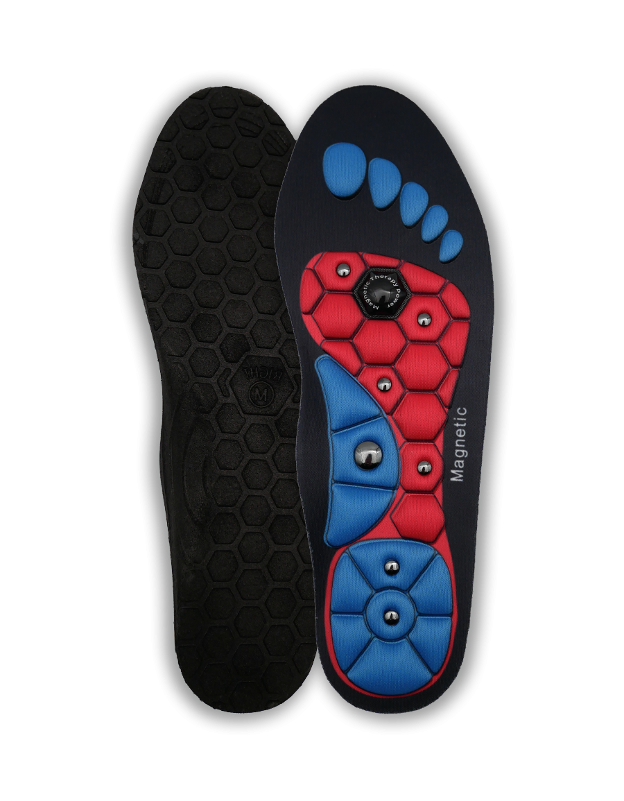 A mágneses cipőbetétek ergonomikus formájú talpbetétek, amelyek ötvözik az akupresszúra és a magnetoterápia hatásait, elősegítve a vérkeringés javítását, a fáradtság enyhítését és a lábfájdalom enyhítését.